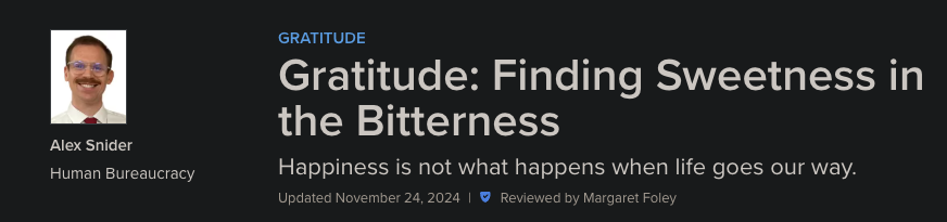 That’s partly why I wrote my latest piece in Psychology Today about finding gratitude amidst the turbulence, where I share some of the challenges I’ve faced and how gratitude has helped me — read it here.